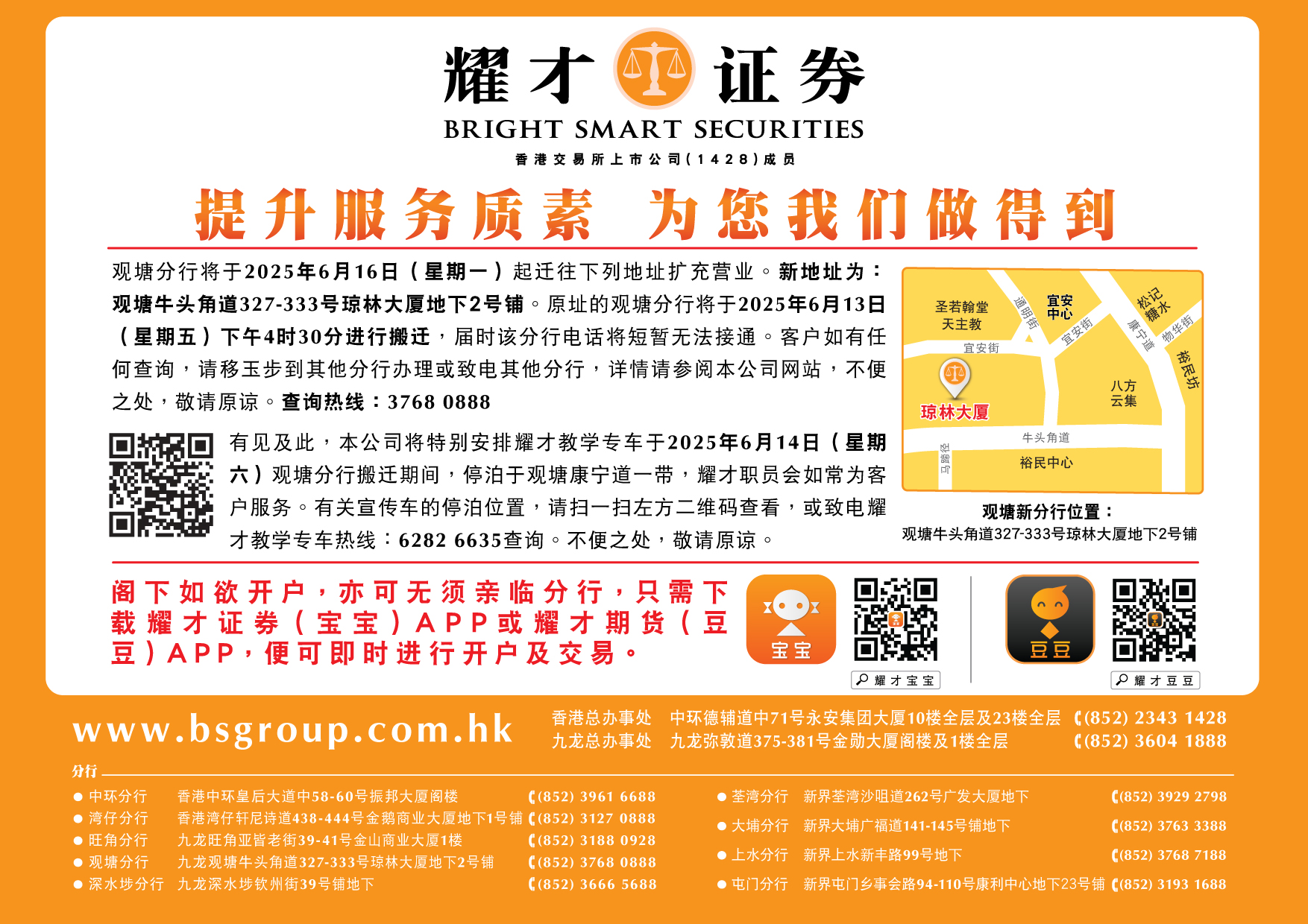 | 观塘分行搬迁事宜 | 2025年06月09日 |